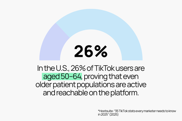 In patient recruitment, showing up where potential participants already live their digital lives is critical. It is no longer enough to rely solely on traditional platforms because behaviors have shifted. In the U.S., 26% of users on TikTok are aged 50-64, demonstrating the platform’s reach into older demographics once thought unreachable via social media.