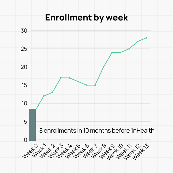 The campaign drove leads at breakneck pace, resulting in a 10x increase in ICFs per week. Lead flow was optimized by zip code as site capacities shifted, restoring steady, high-quality enrollment.